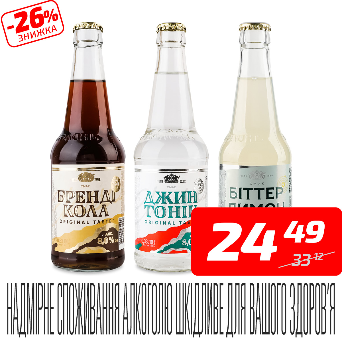 Напій слабоалкогольний сильногазований в асортименті, 8%, скло, ТМ «Оболонь», 0,33 л