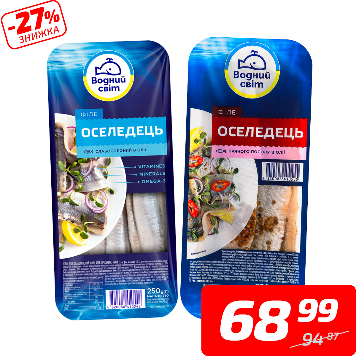 Оселедець, філе в олії, с/с або п/п, ТМ «Водний світ», 250 г