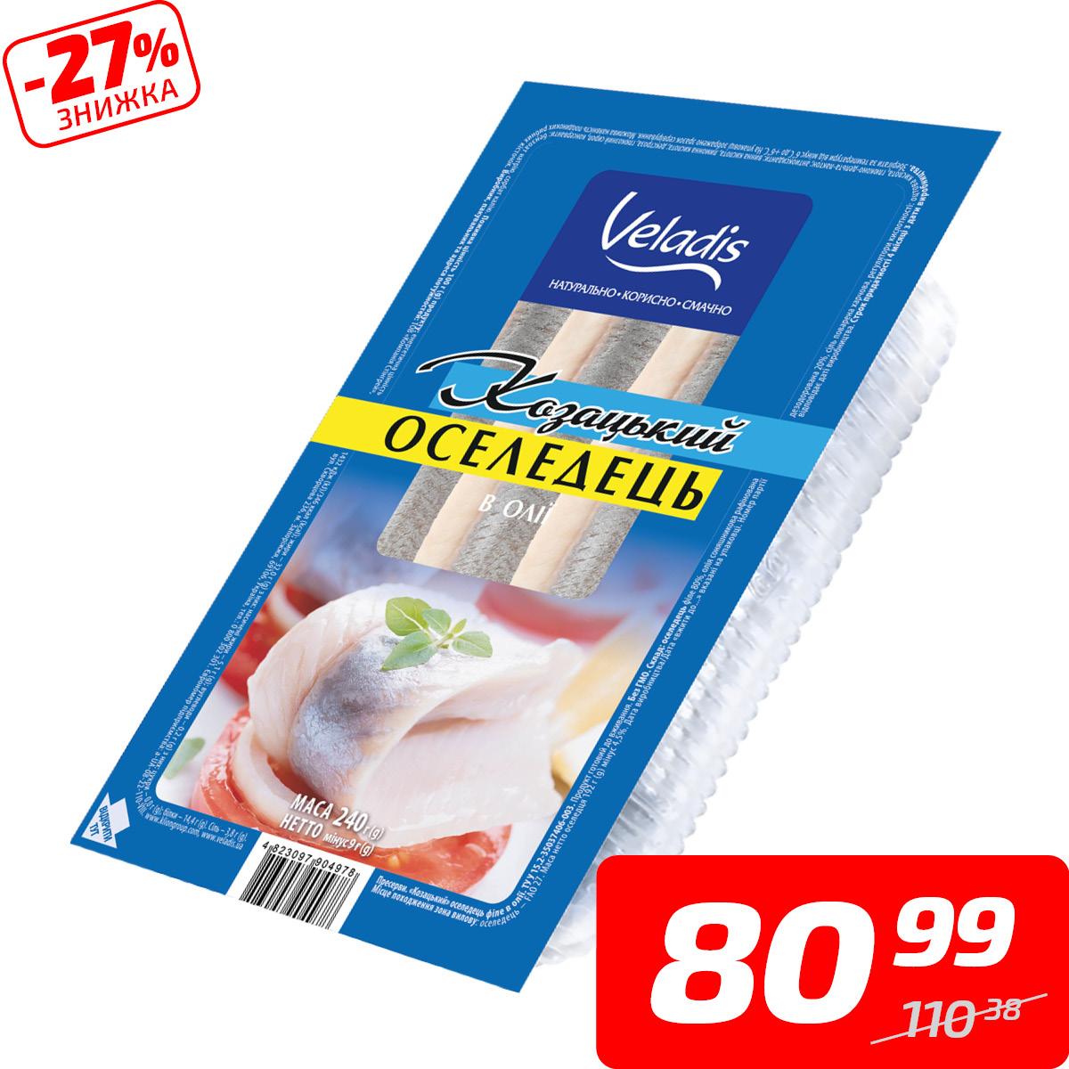 Оселедець «Козацький», філе в олії, ТМ «Veladis», 240 г