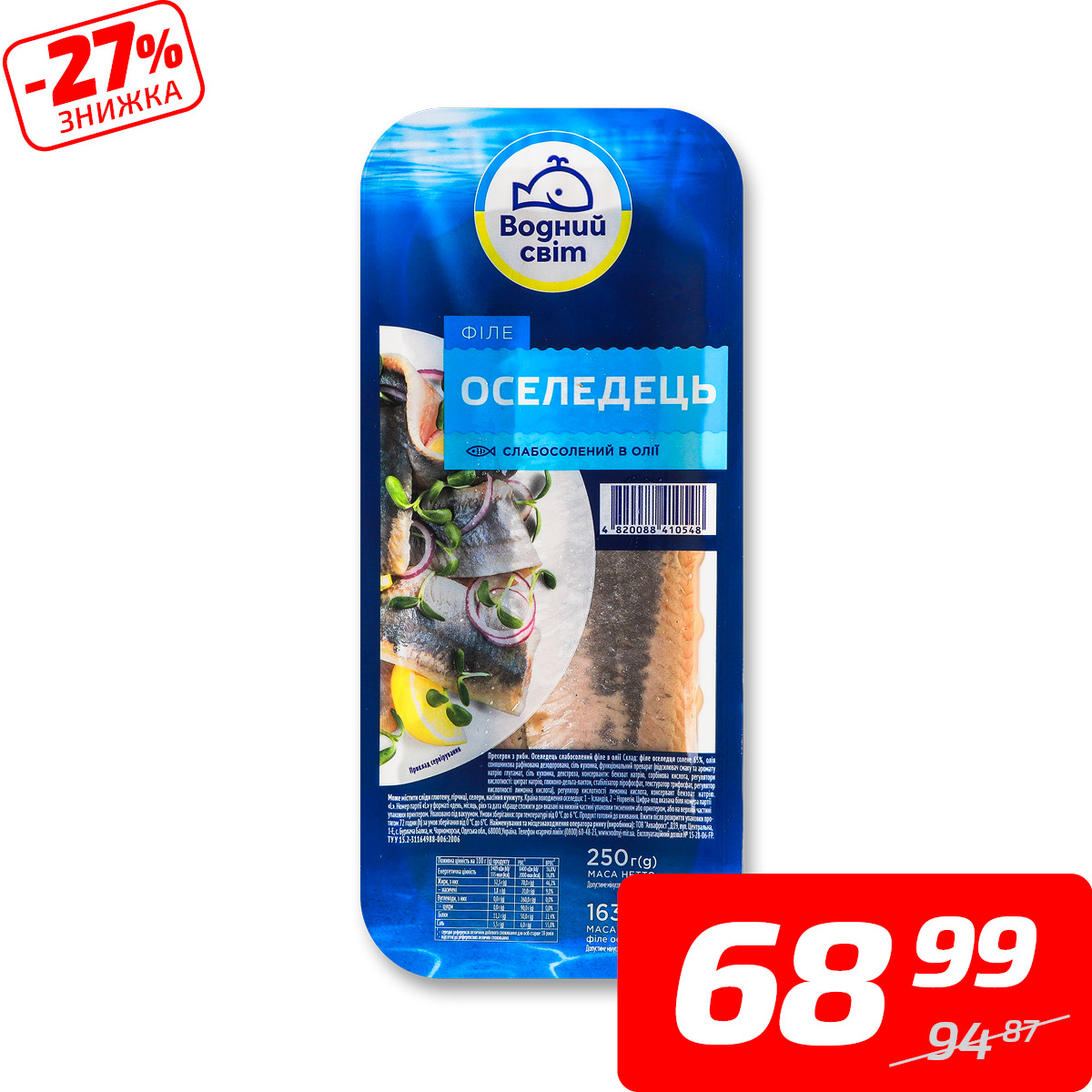 Оселедець, с/с, філе в олії, ТМ «Водний світ», 250 г