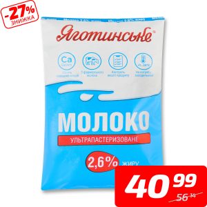 Молоко ультрапастеризоване, 2,6%, ТМ «Яготинське», 900 г