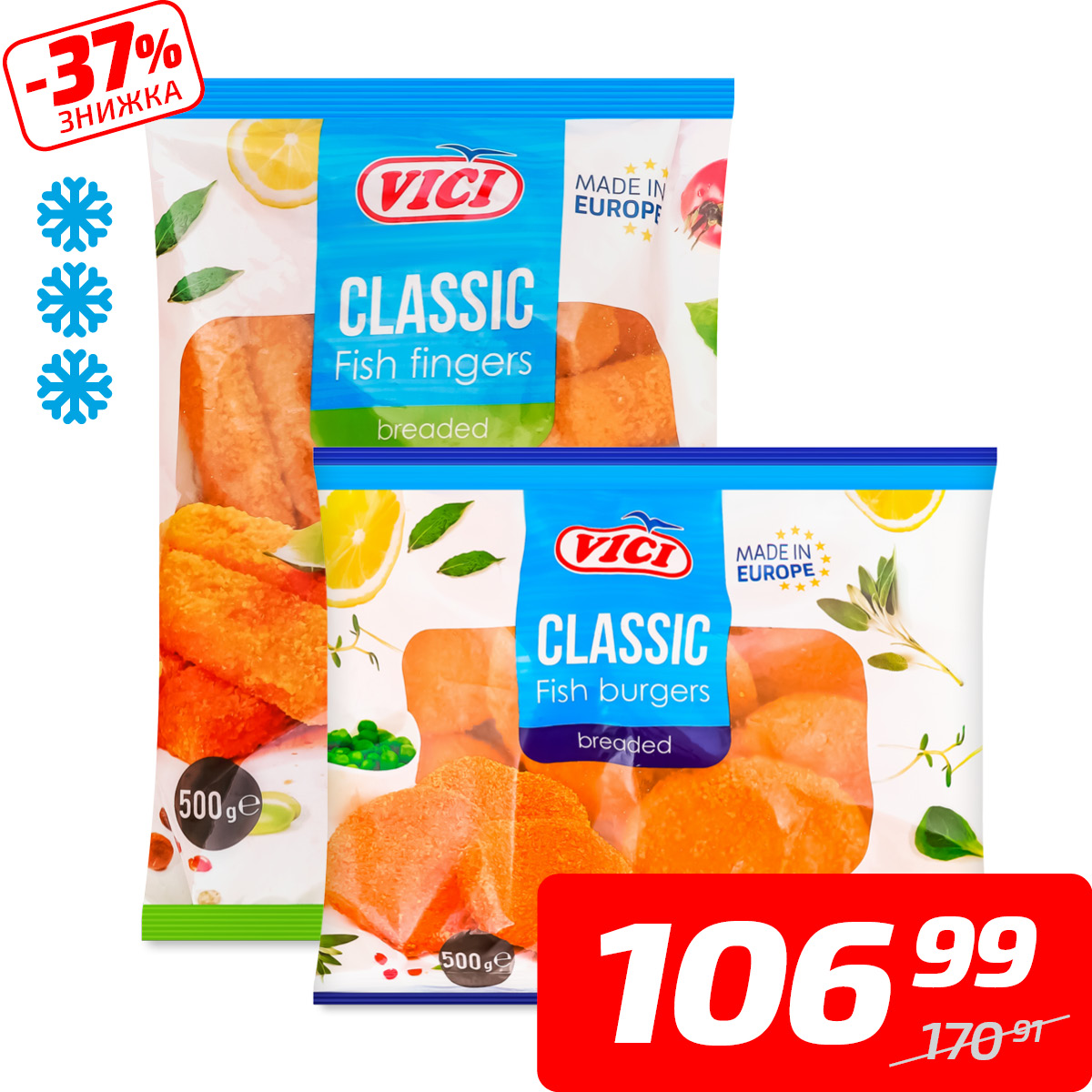 Палички або бургери рибні, ТМ «Vici», 500 г