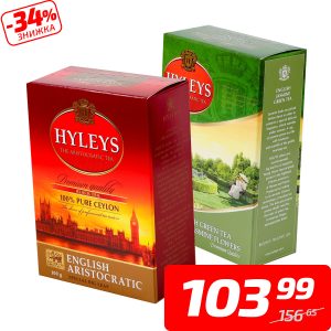 Чай «Англійський», чорний або зелений з жасмином, ТМ «Hyleys», 100 г