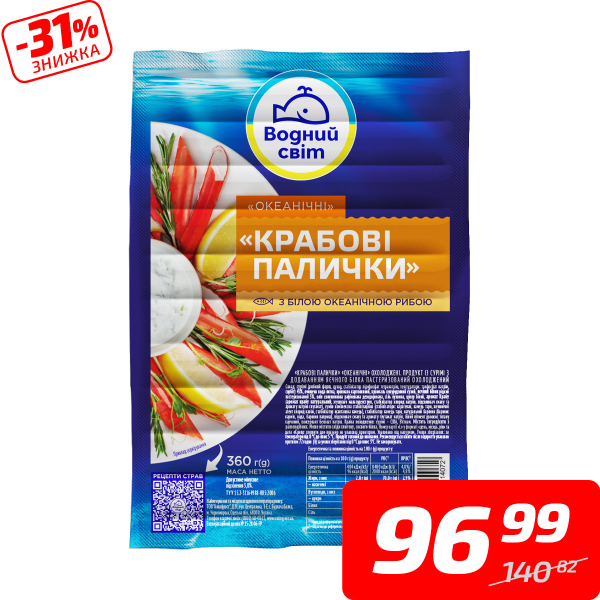 Палички крабові, охолоджені, ТМ «Водний світ», 360 г