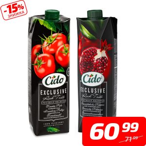 Нектар або сік в асортименті, ТМ «Cido», 1 л