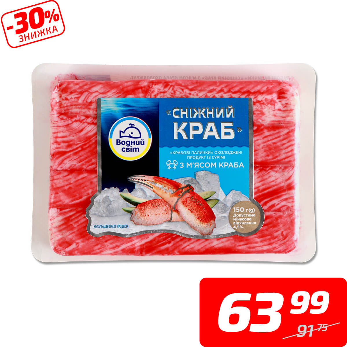 Палички крабові «Сніжний краб», охолоджені, ТМ «Водний світ», 150 г