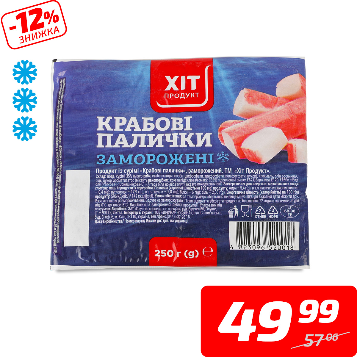 Палички крабові, заморожені, ТМ «Хіт Продукт», 250 г