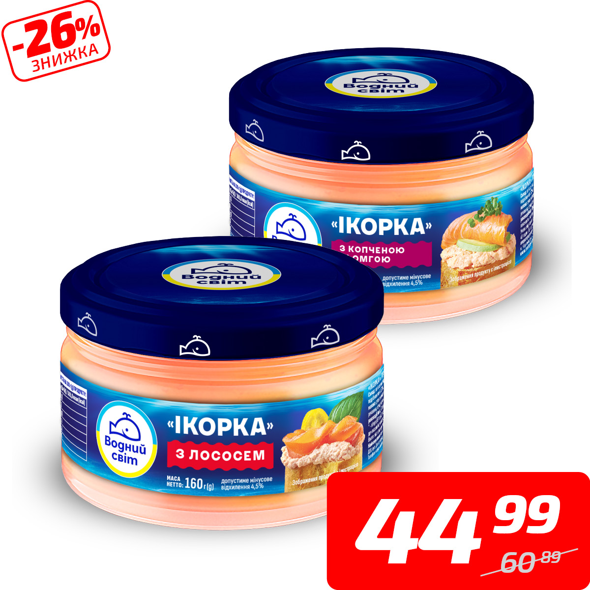 Паста «Ікорка» в асортименті, ТМ «Водний світ», 160 г