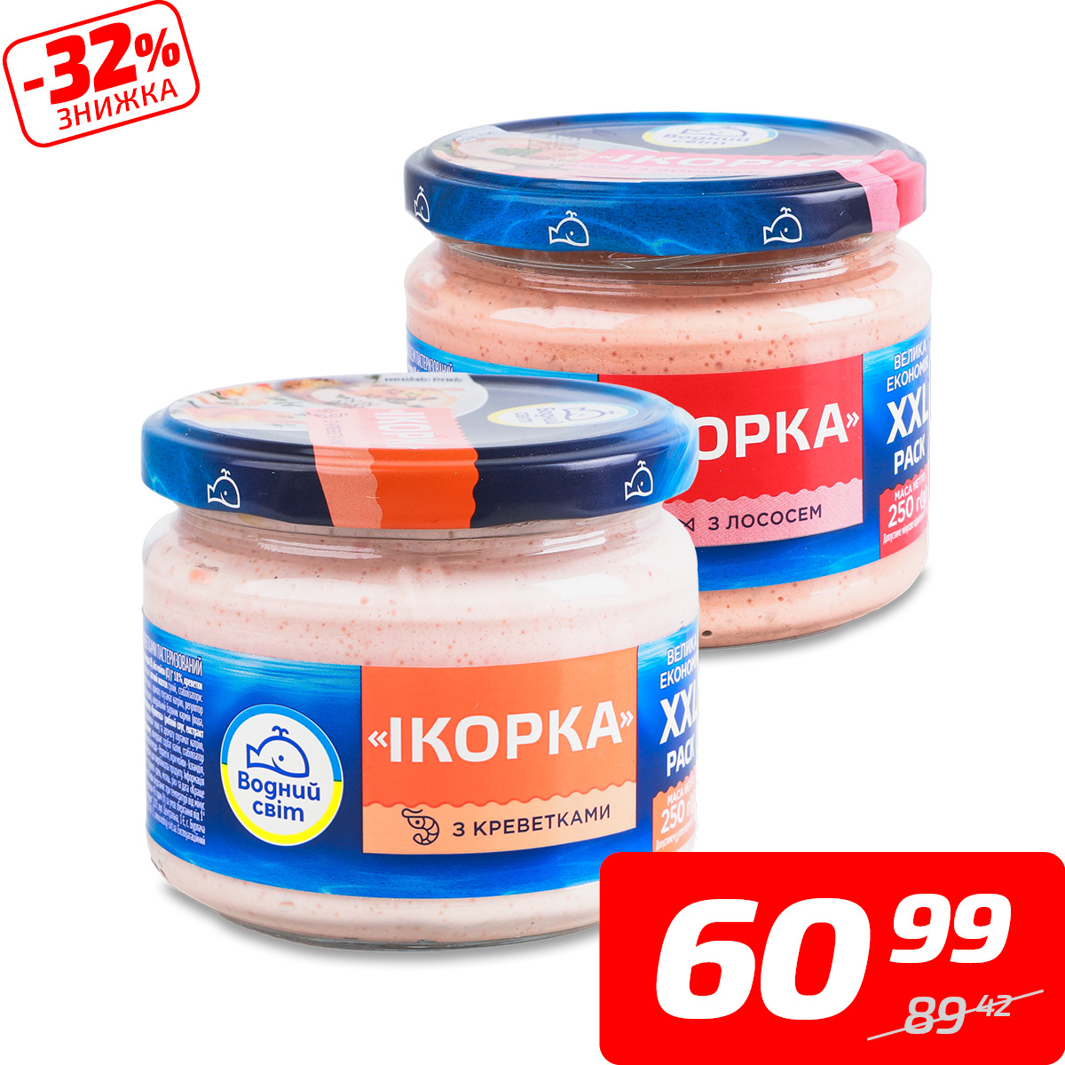 Паста «Ікорка» з креветками або з лососем, ТМ «Водний світ», 250 г