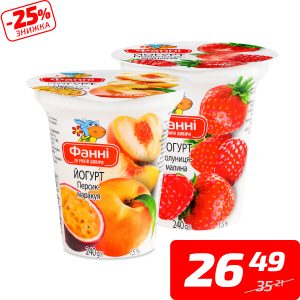 Йогурт з наповнювачем в асортименті, 1,5%, стакан, ТМ «Фанні», 240 г