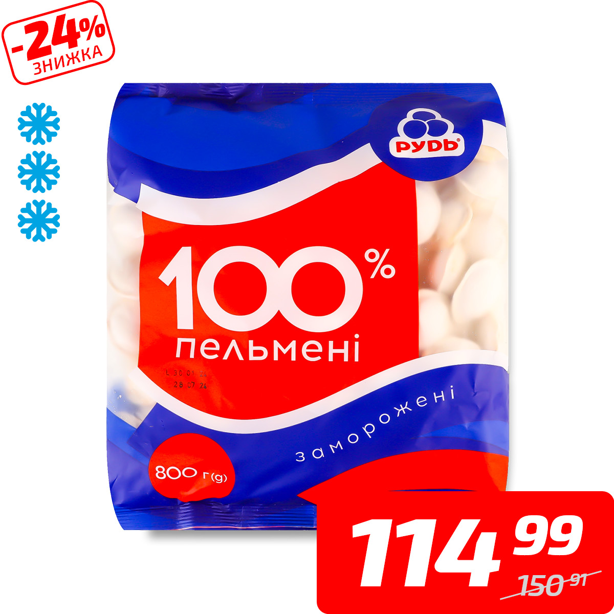 Пельмені 100%, заморожені, ТМ «Рудь», 800 г