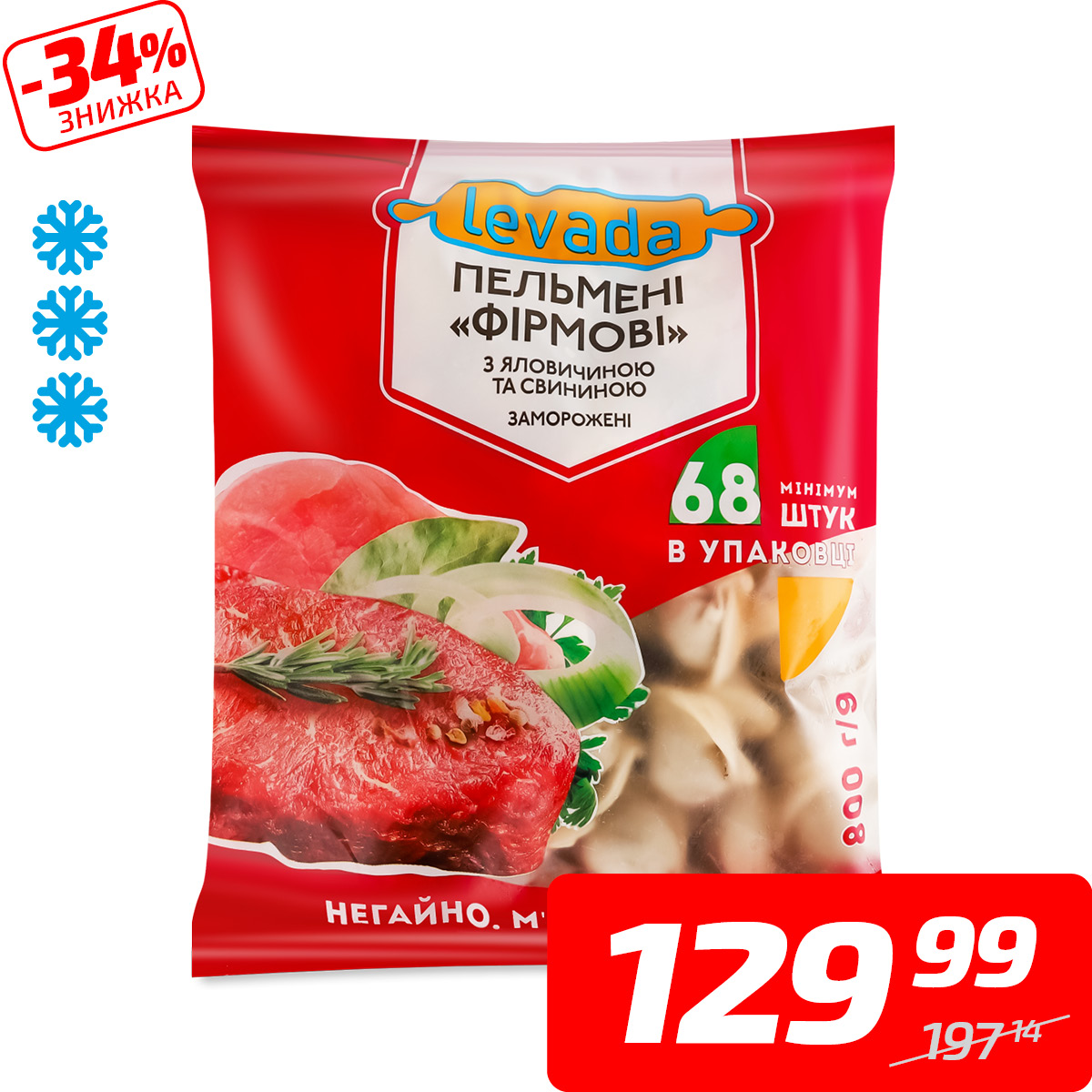 Пельмені зі свининою та яловичиною, ТМ «Levada», 800 г