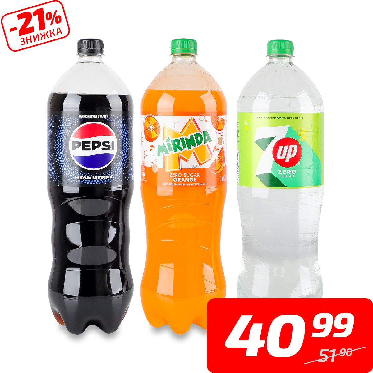 Напій безалкогольний сильногазований в асортименті, ТМ «Pepsi», «Mirinda» або «7UP», 1,75 л
