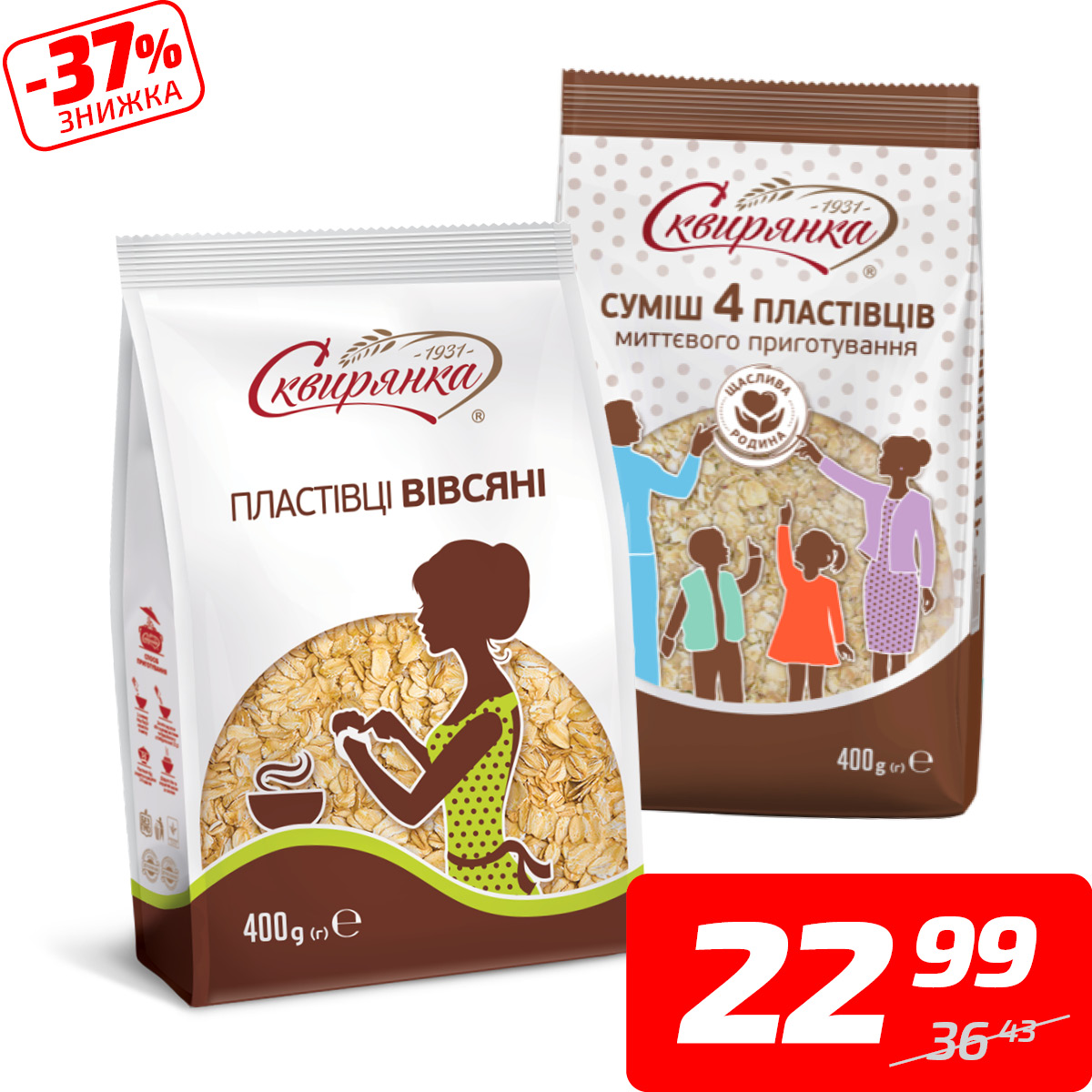 Пластівці вівсяні або суміш 4 пластівців, ТМ «Сквирянка», 400 г