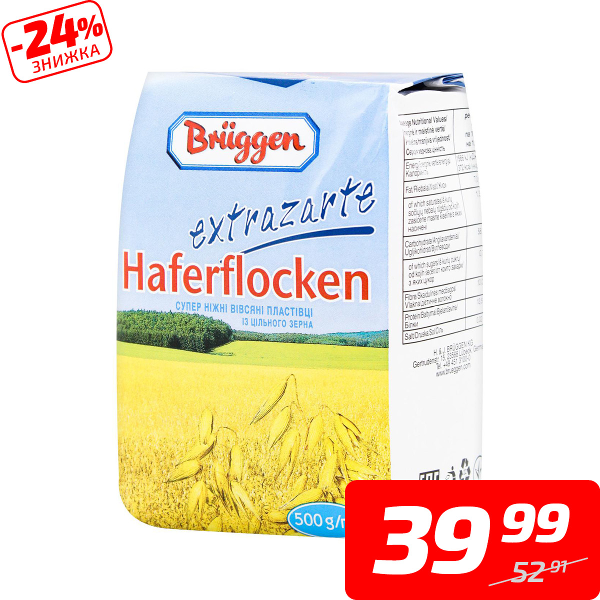 Пластівці вівсяні «Екстразарт» супер ніжні, ТМ «Брюгген», 500 г