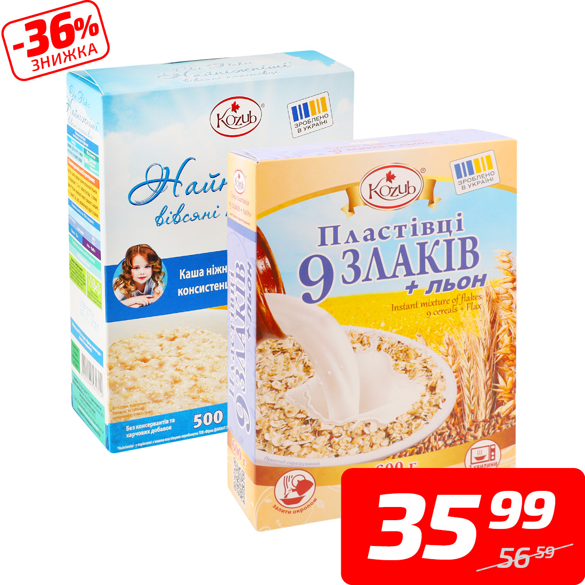 Пластівці вівсяні «Найніжніші» або «9 злаків+льон», ТМ «Козуб продукт», 500 г