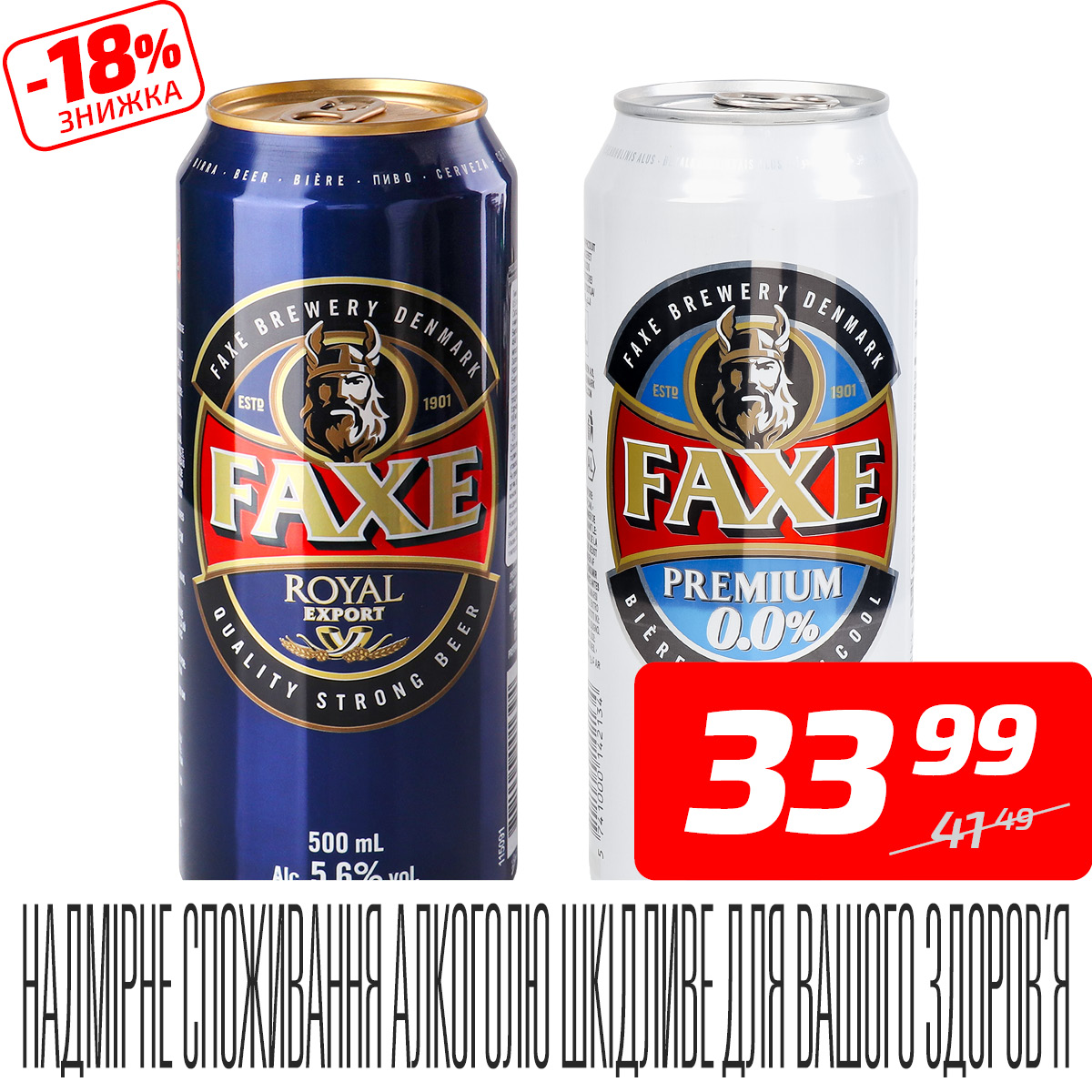 Пиво «Royal Export» або «Premium», світле, 0-5,6%, ж/б, ТМ «Faxe», 0,5 л