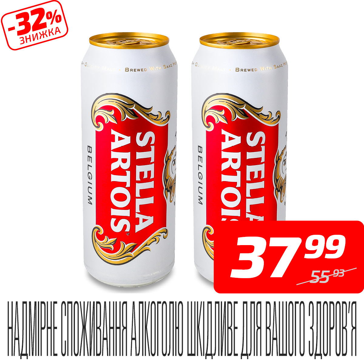 Пиво світле, 5,2%, ж/б, ТМ «Стелла Артуа», 0,5 л
