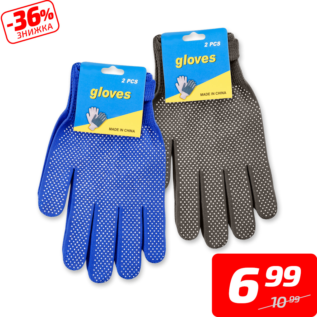 Рукавички садові в білу крапку в асортименті, 22*12см