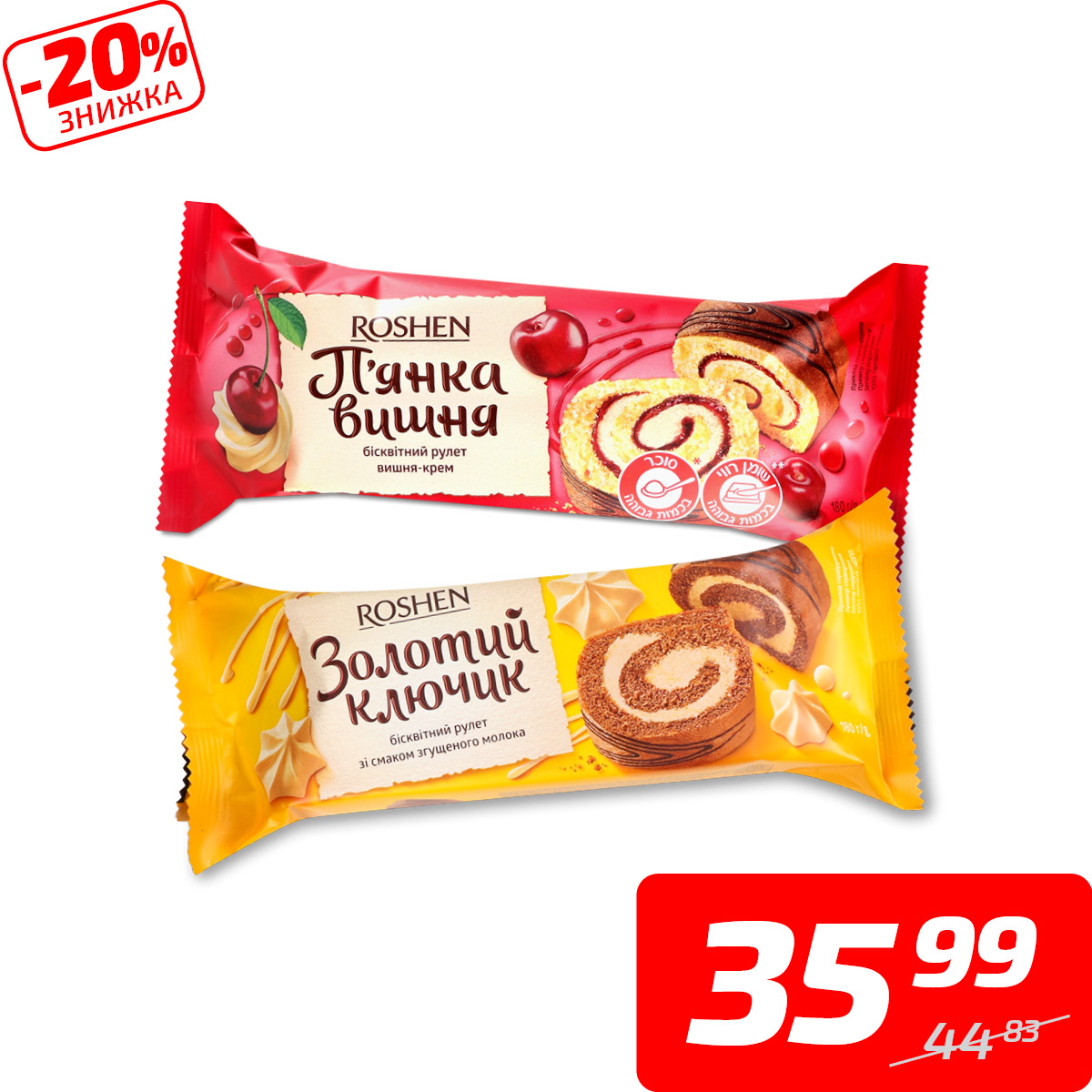 Рулет бісквітний в асортименті, ТМ «Рошен», 180 г