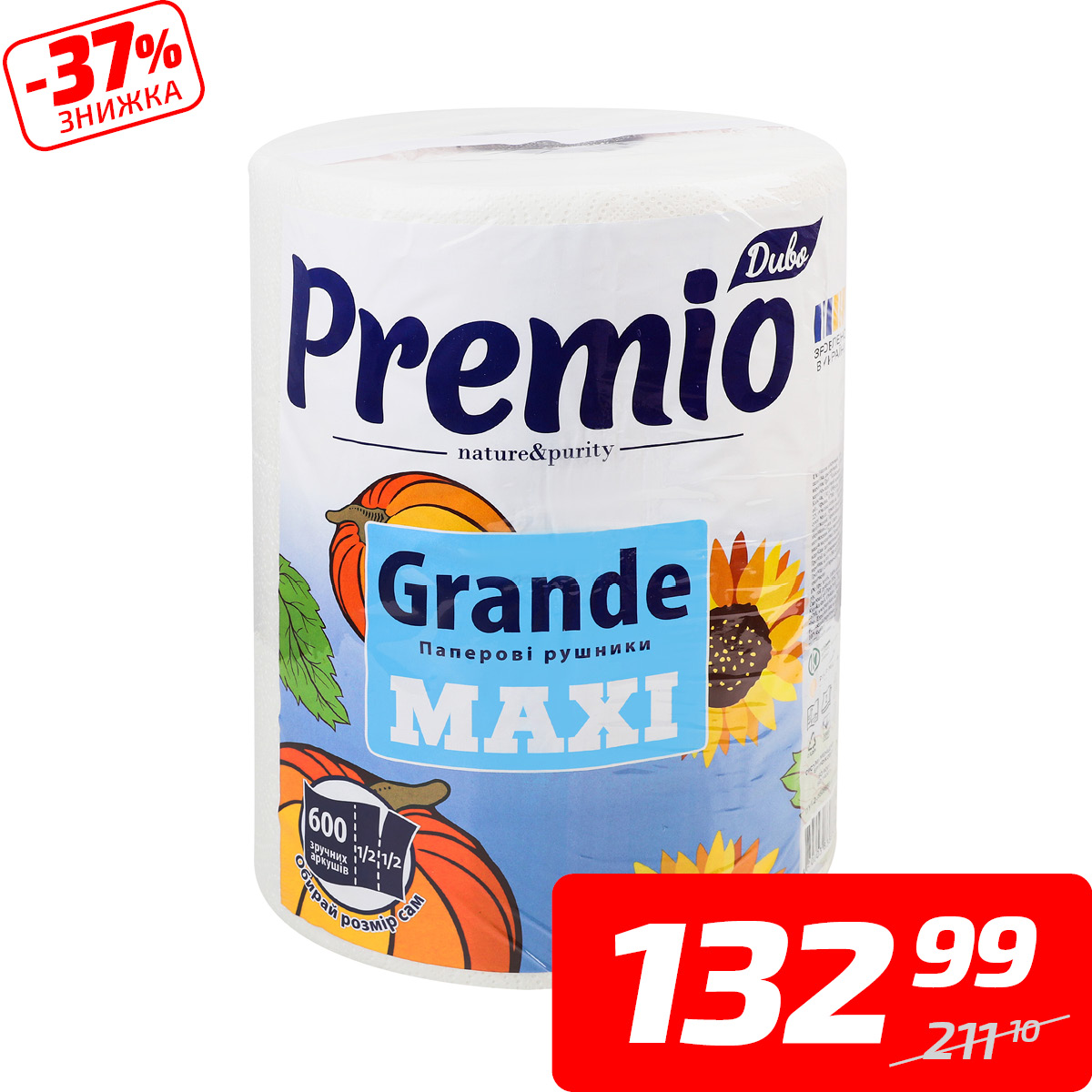 Рушники паперові «Преміо Гранде Максі», білі, 2 шари, ТМ «Диво», 1 шт.