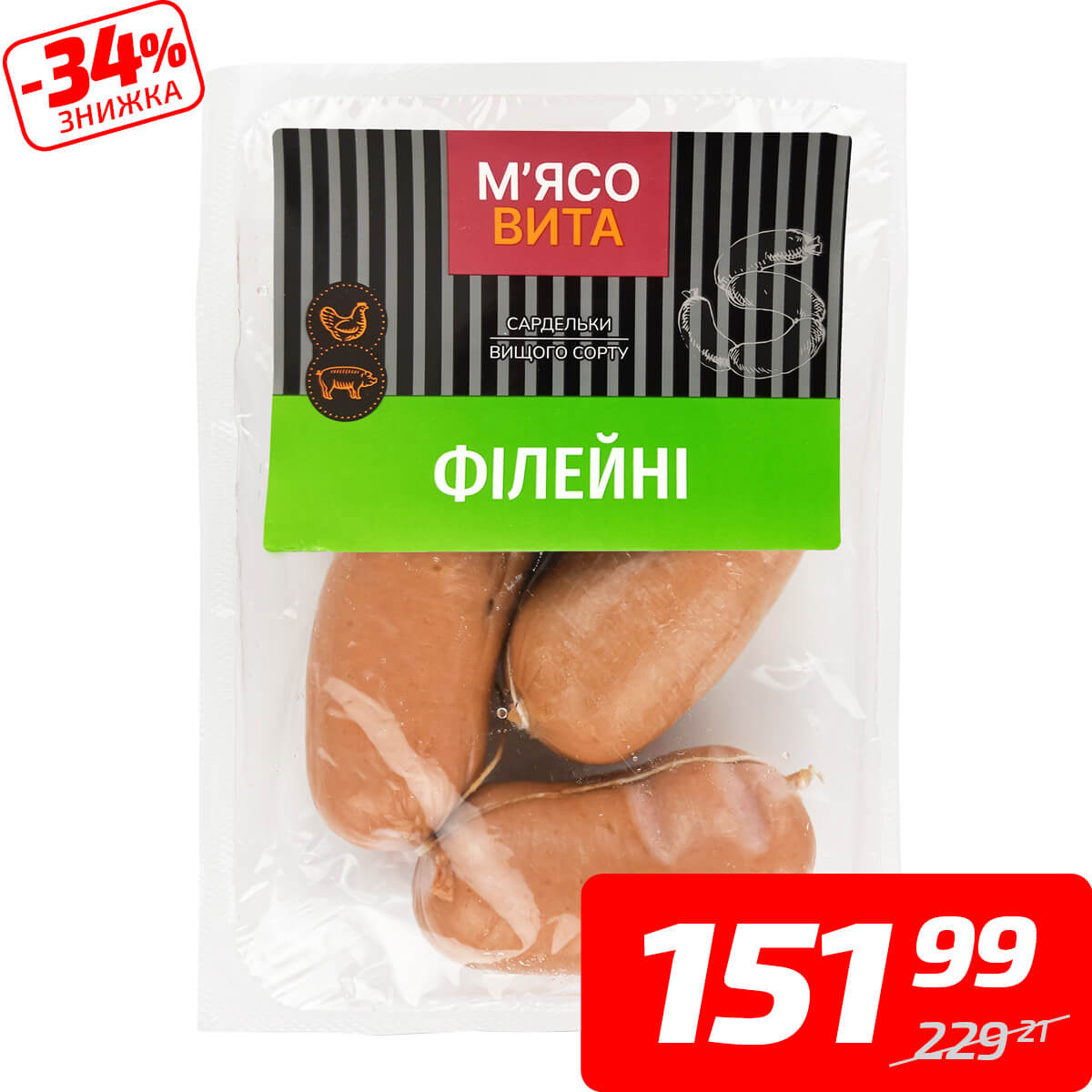Сардельки «Філейні», в/ґ, ТМ «М’ясовита», 1 кг