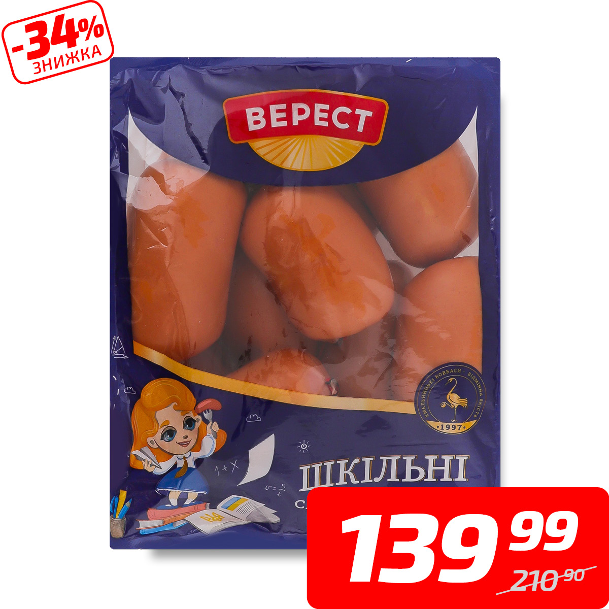 Сардельки «Шкільні», варені, в/ґ, ТМ «Верест», 1 кг
