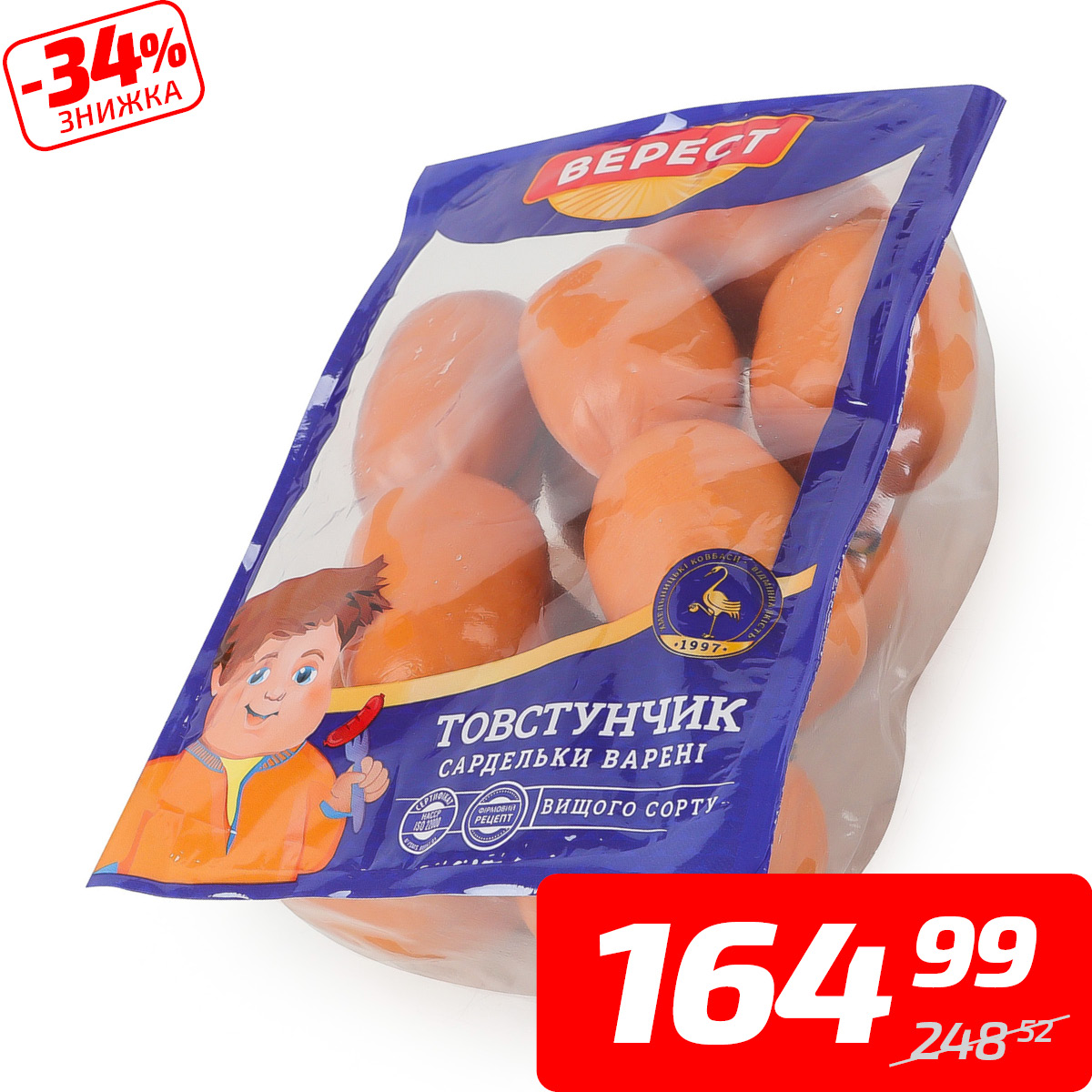 Сардельки «Товстунчик», варені, в/ґ, ТМ «Верест», 1 кг