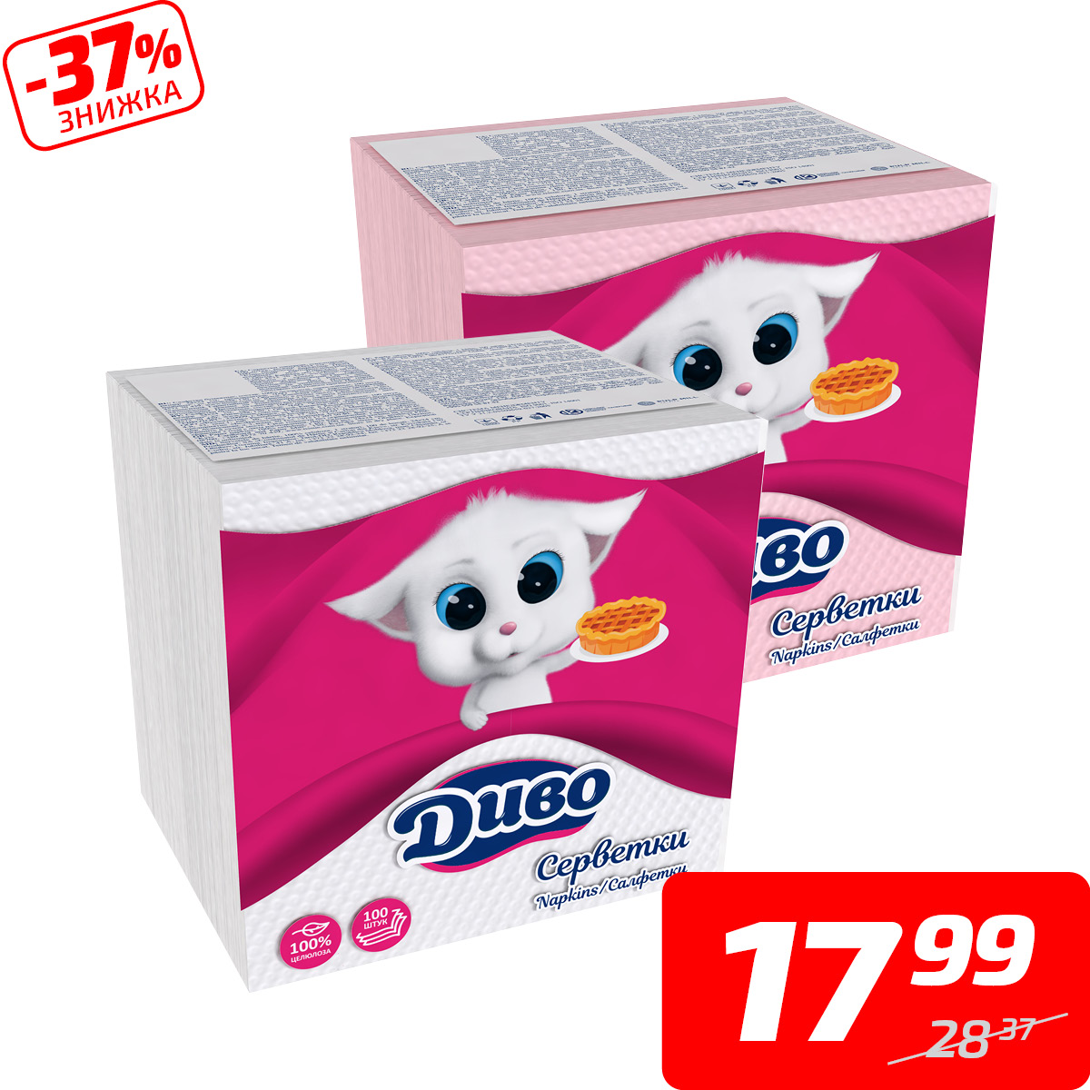 Серветки паперові «Диво» в асортименті, 24*25см, ТМ «ККПК», 100 шт.