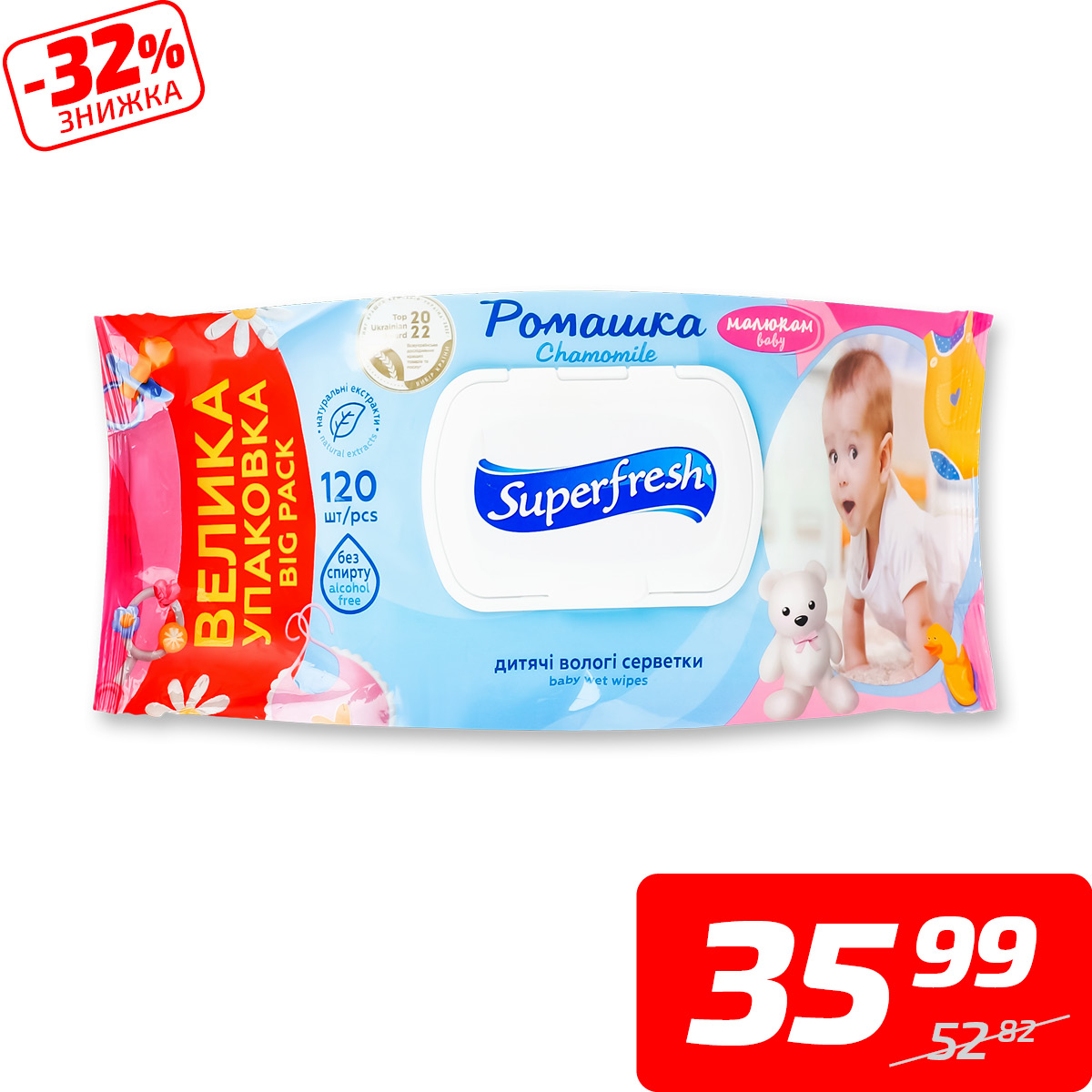 Серветки вологі для дітей та мам, ТМ «Суперфреш», 120 шт.