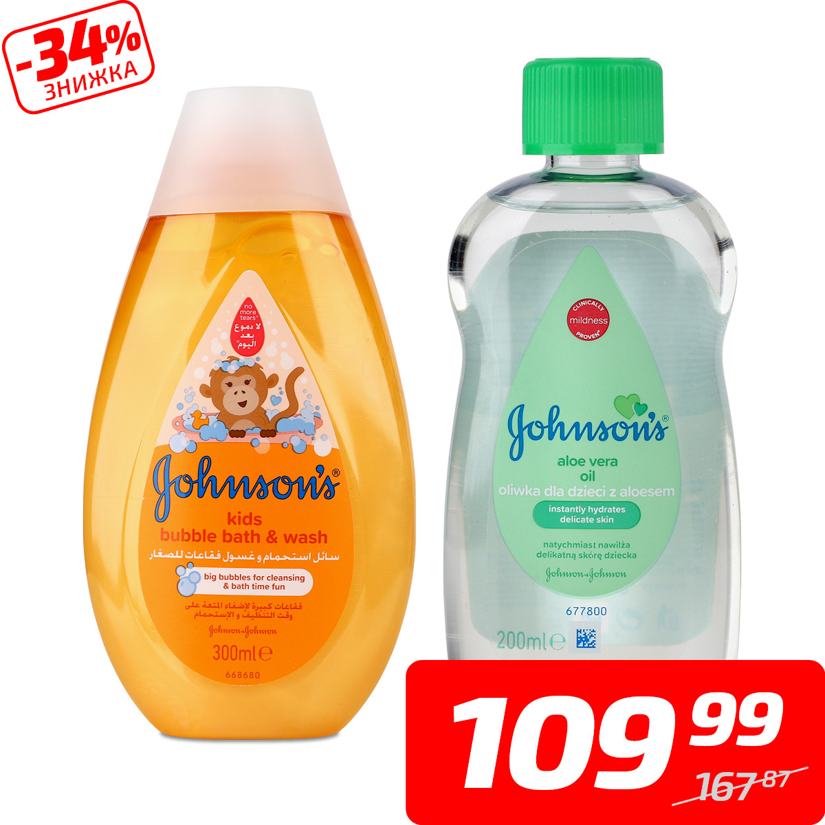 Шампунь, олійка або гель дитячий в асортименті, ТМ «Johnson’s Baby», 200 мл