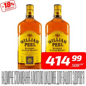 Віскі шотландський, купажований, 40%, ТМ «William Peel», 1 л