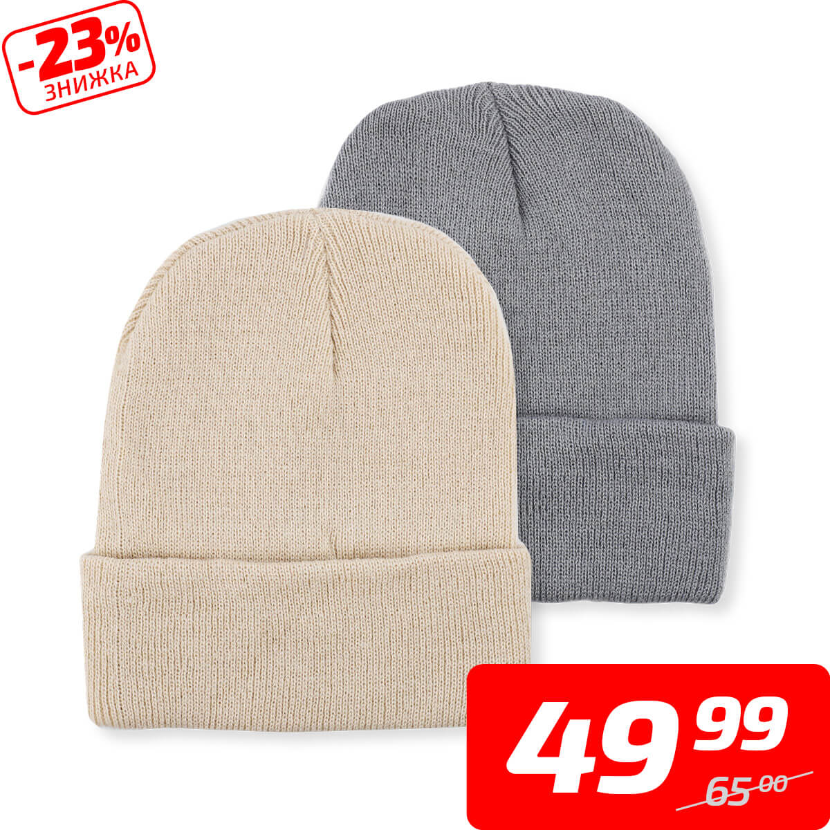 Шапка жіноча або чоловіча в асортименті, акрил, 28-29 см