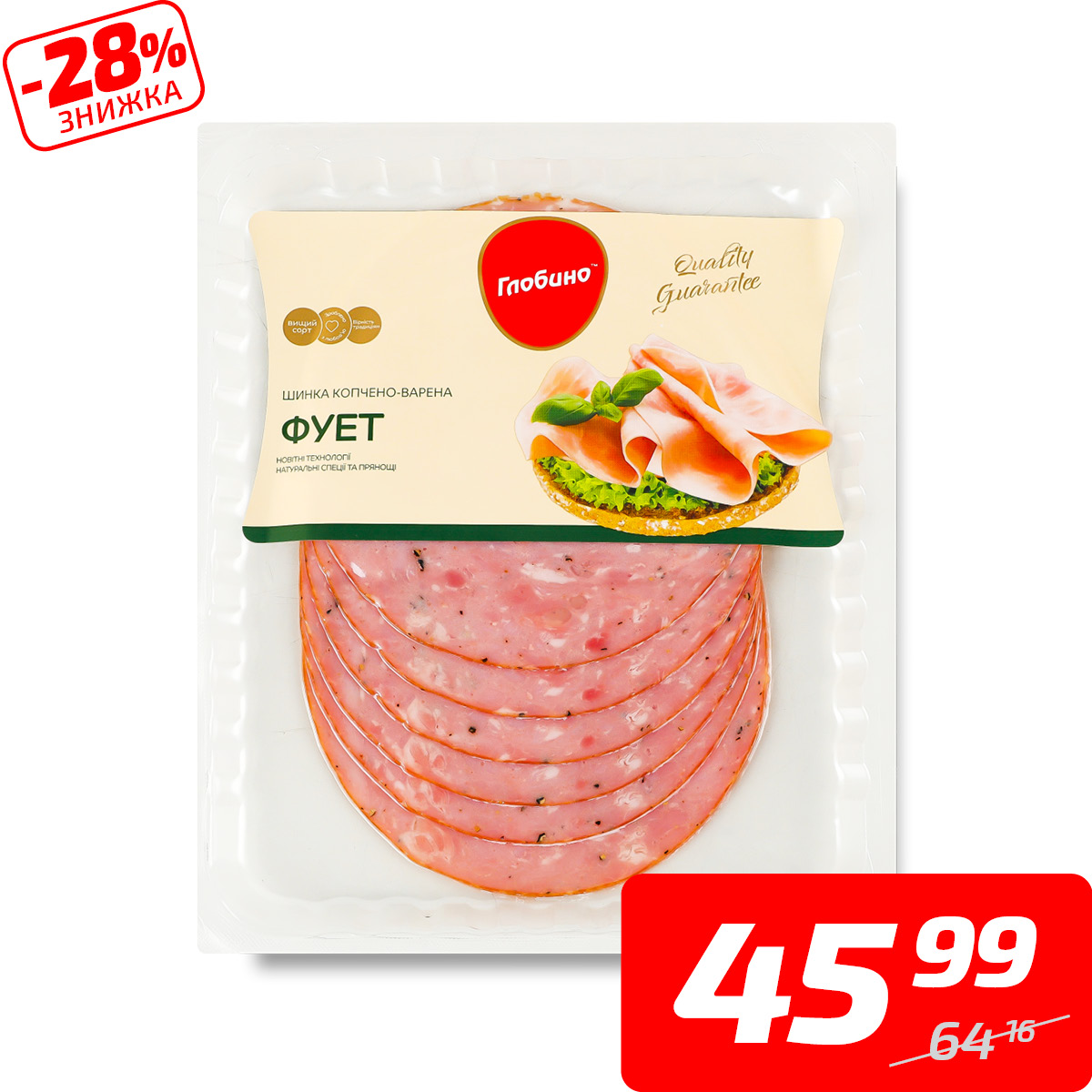 Шинка «Фует», в/к, в/ґ, нарізка, ТМ «Глобино», 105 г