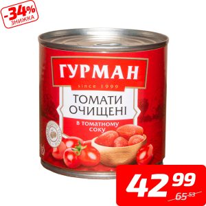 Томати очищені в томатному соку, ТМ «Гурман», 830 г