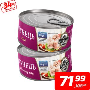 Тунець у власному соку або в олії, ТМ «Фіш Лайн», 160 г