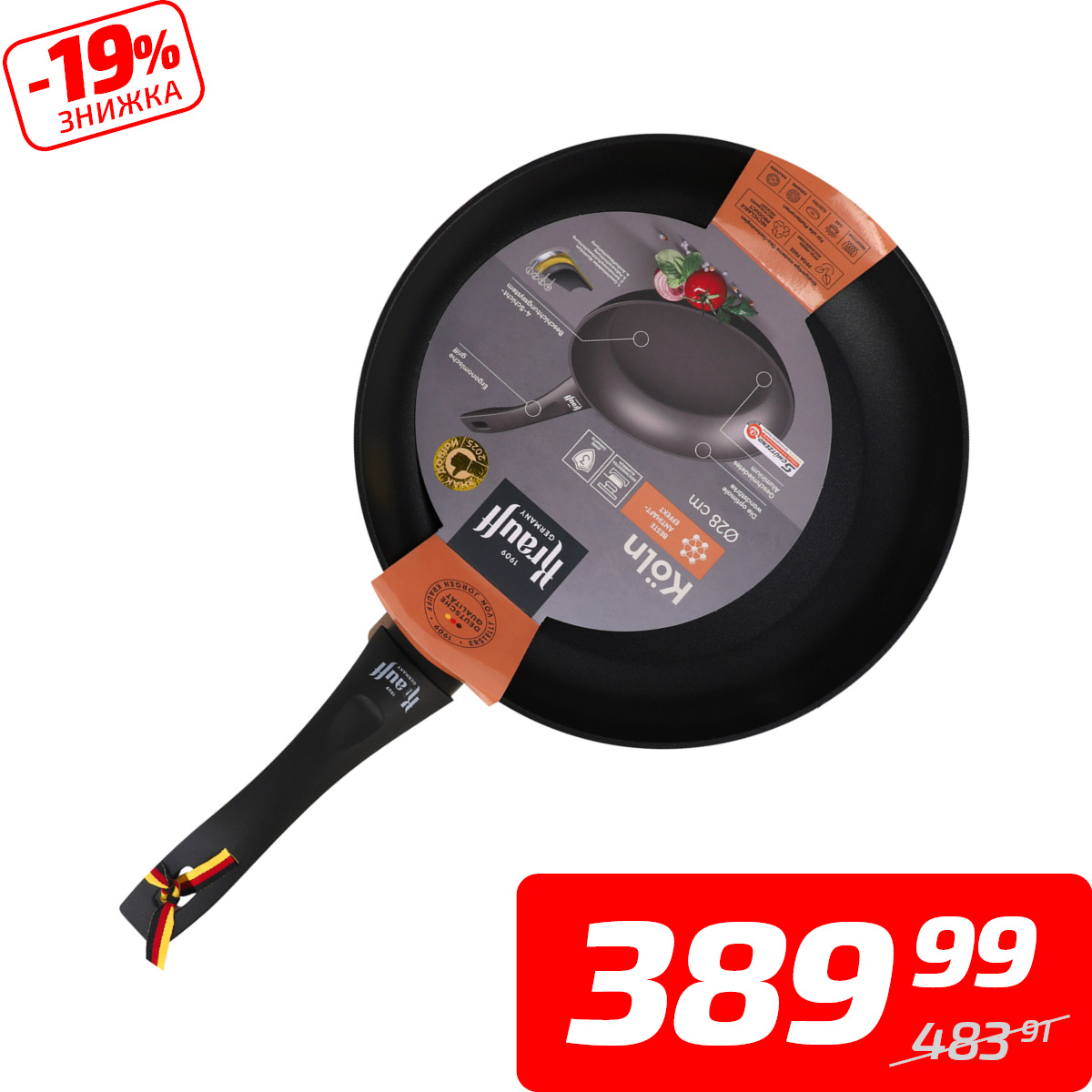 Сковорода «Koln» алюмінієва з антипригарним покриттям , ТМ «Krauff», 28 см