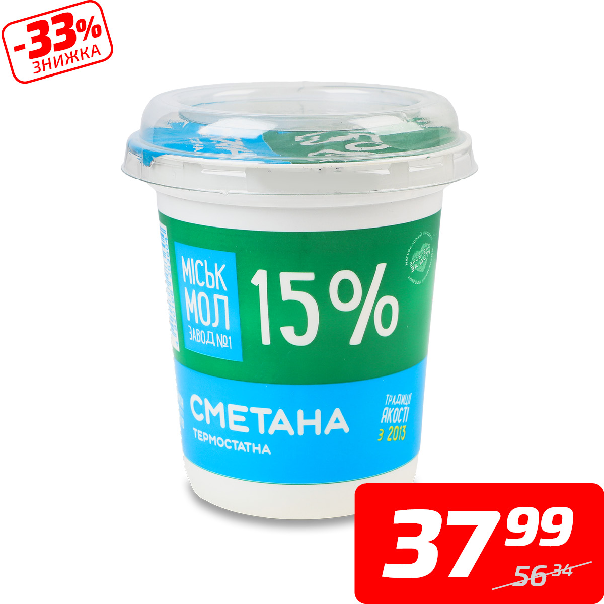 Сметана термостатна, 15%, стакан, ТМ «Міськмолзавод №1», 300 г