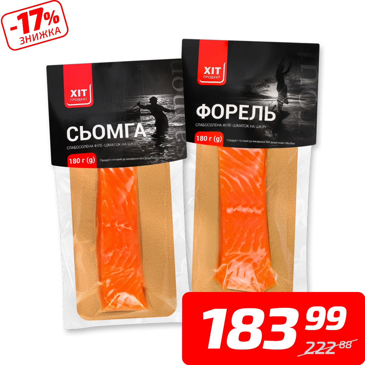 Сьомга або форель, філе, с/с, ТМ «Хіт Продукт», 180 г