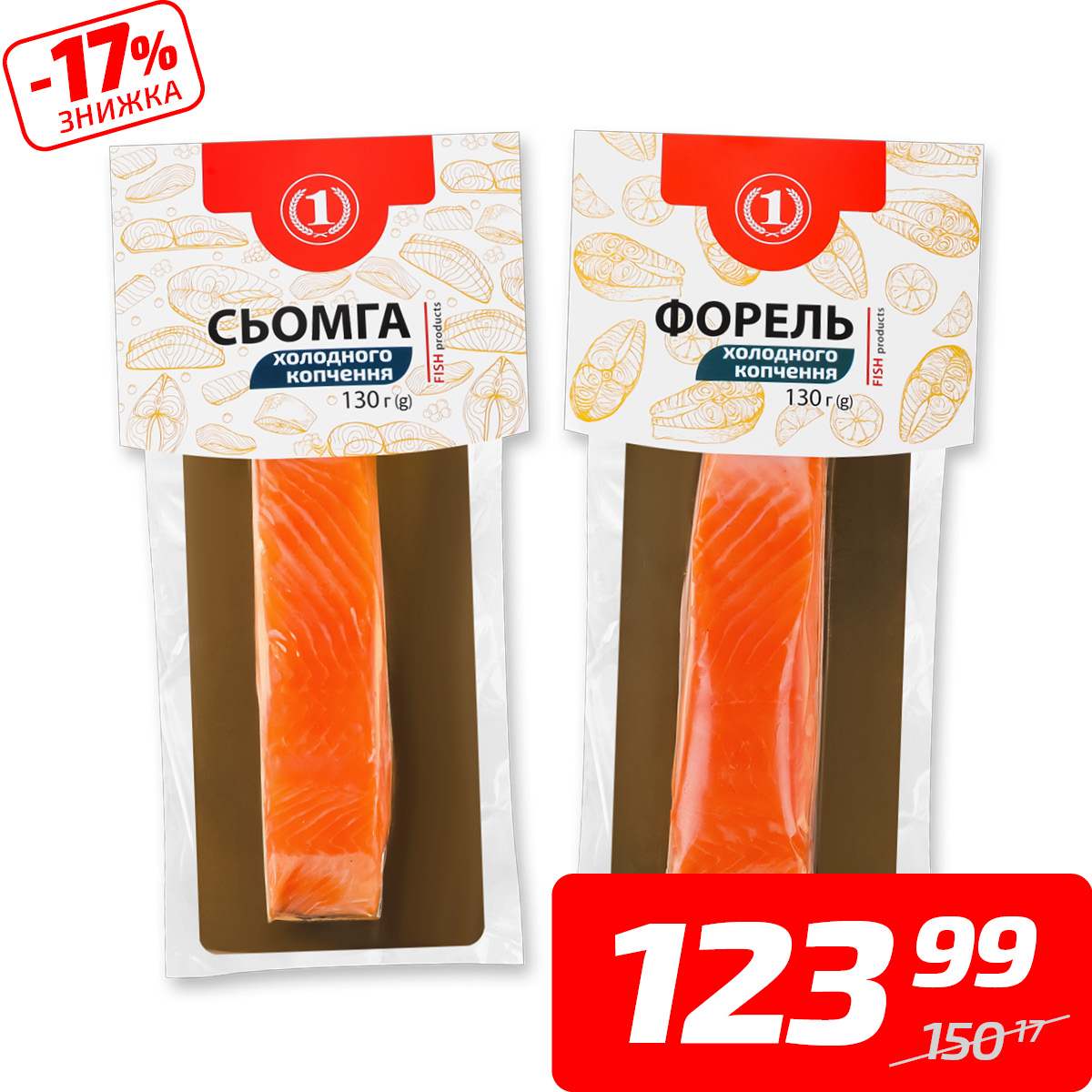 Сьомга або форель, х/к, філе-шматок на шкірі, ТМ «1», 130 г