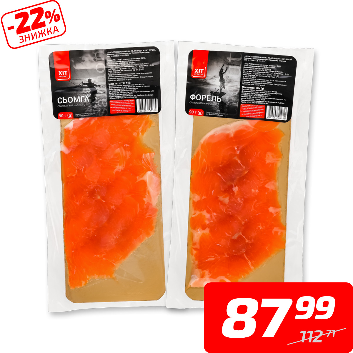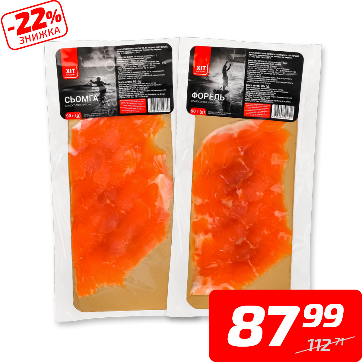 Сьомга або форель, с/с, нарізка, ТМ «Хіт Продукт», 90 г
