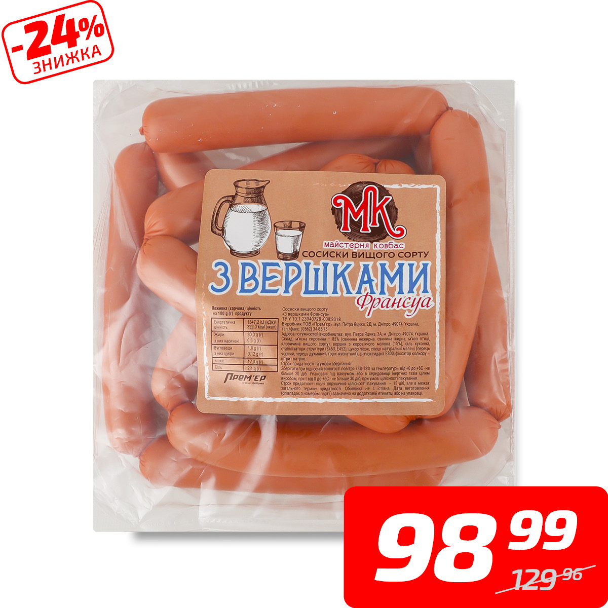 Сосиски «З вершками Франсуа», в/ґ, ТМ «Майстерня ковбас», 1 кг