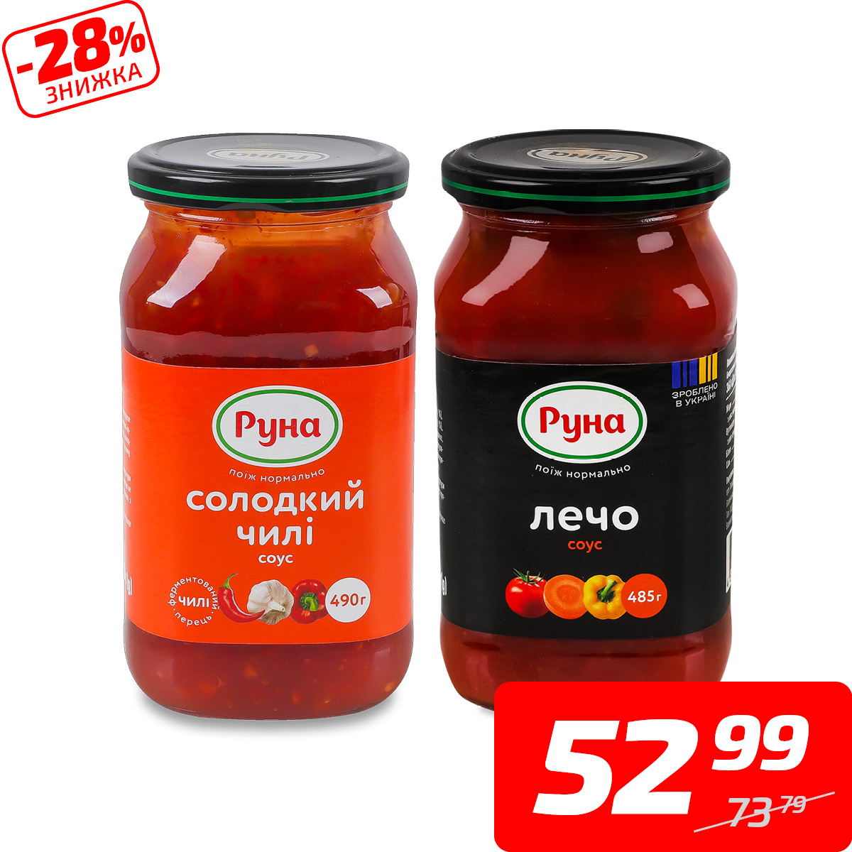 Соус в асортименті, ТМ «Руна», 485-490 г
