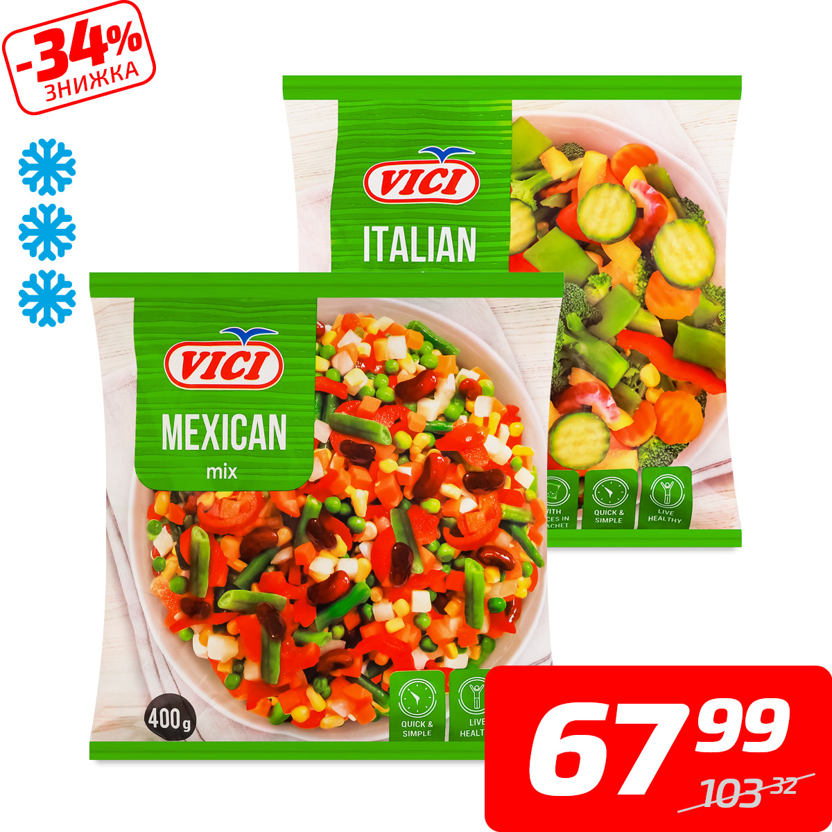 Суміш «Мексиканська» або овочі «По-італійськи», швидкозаморожені, ТМ «Vici», 400 г