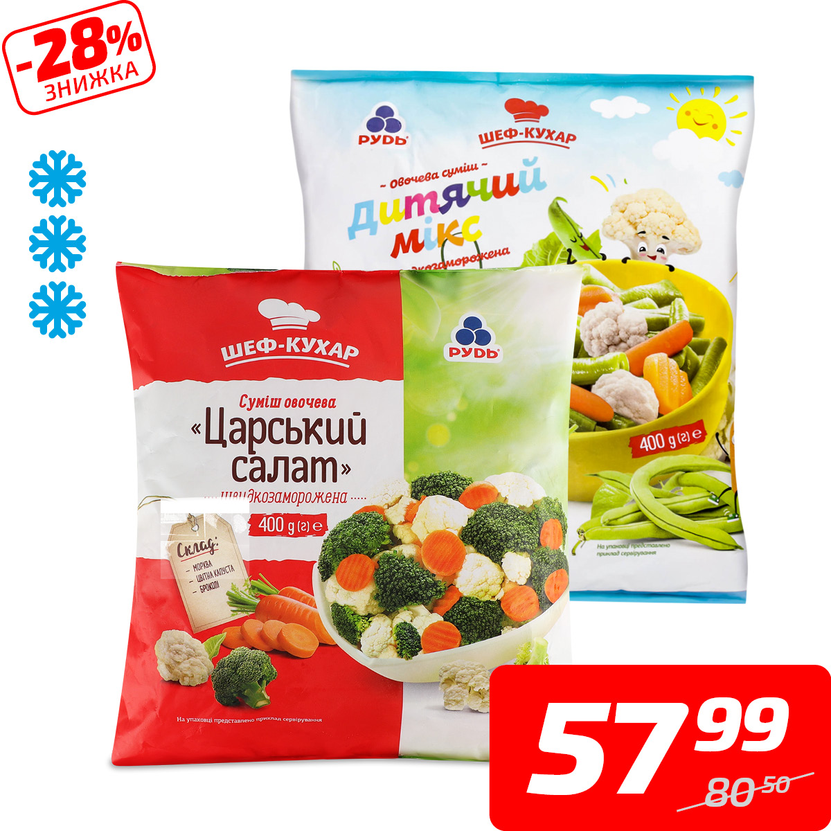 Суміш овочева «Дитячий мікс» або «Весняна», с/м, ТМ «Рудь», 400 г