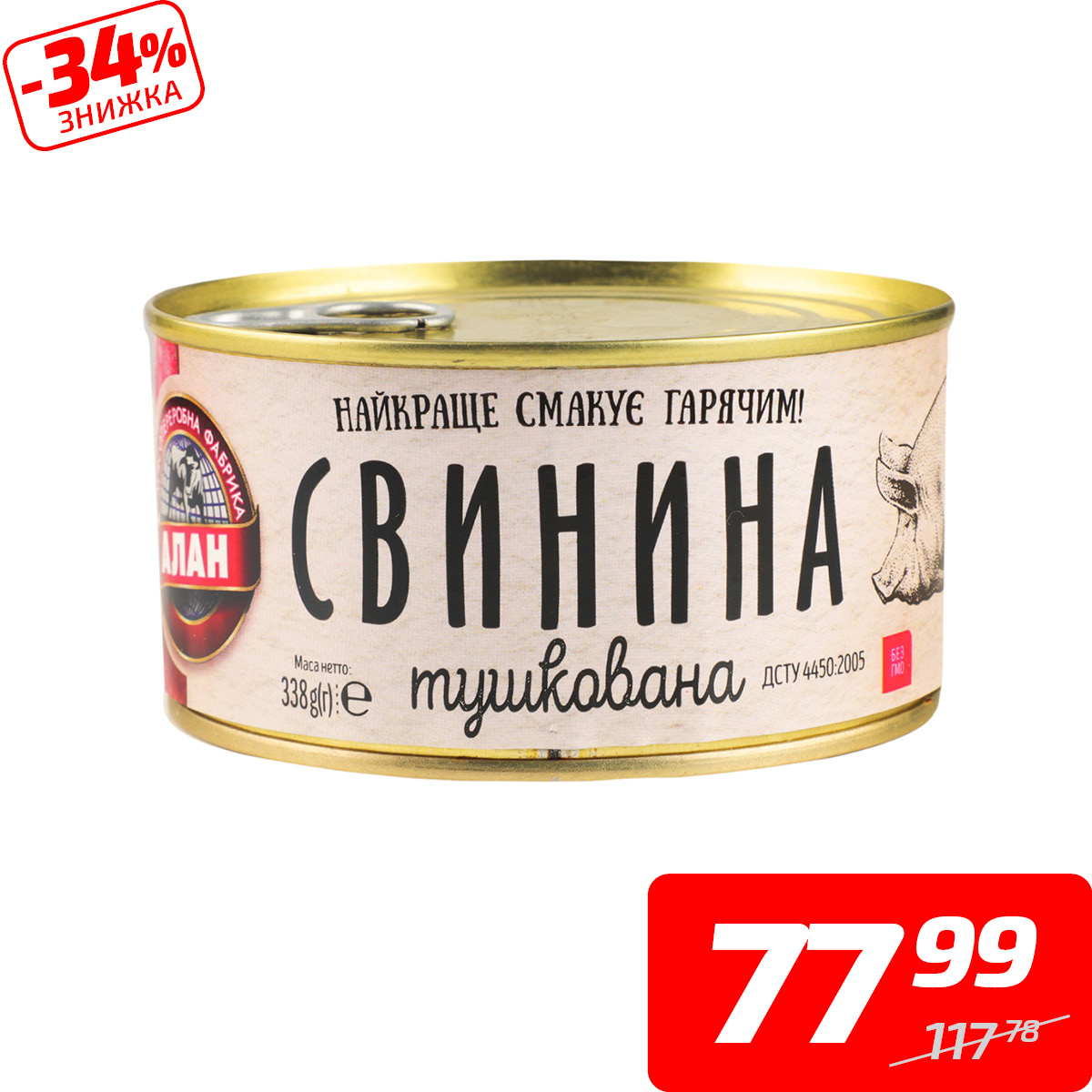 Свинина тушкована, в/г, ТМ «Алан», 338 г