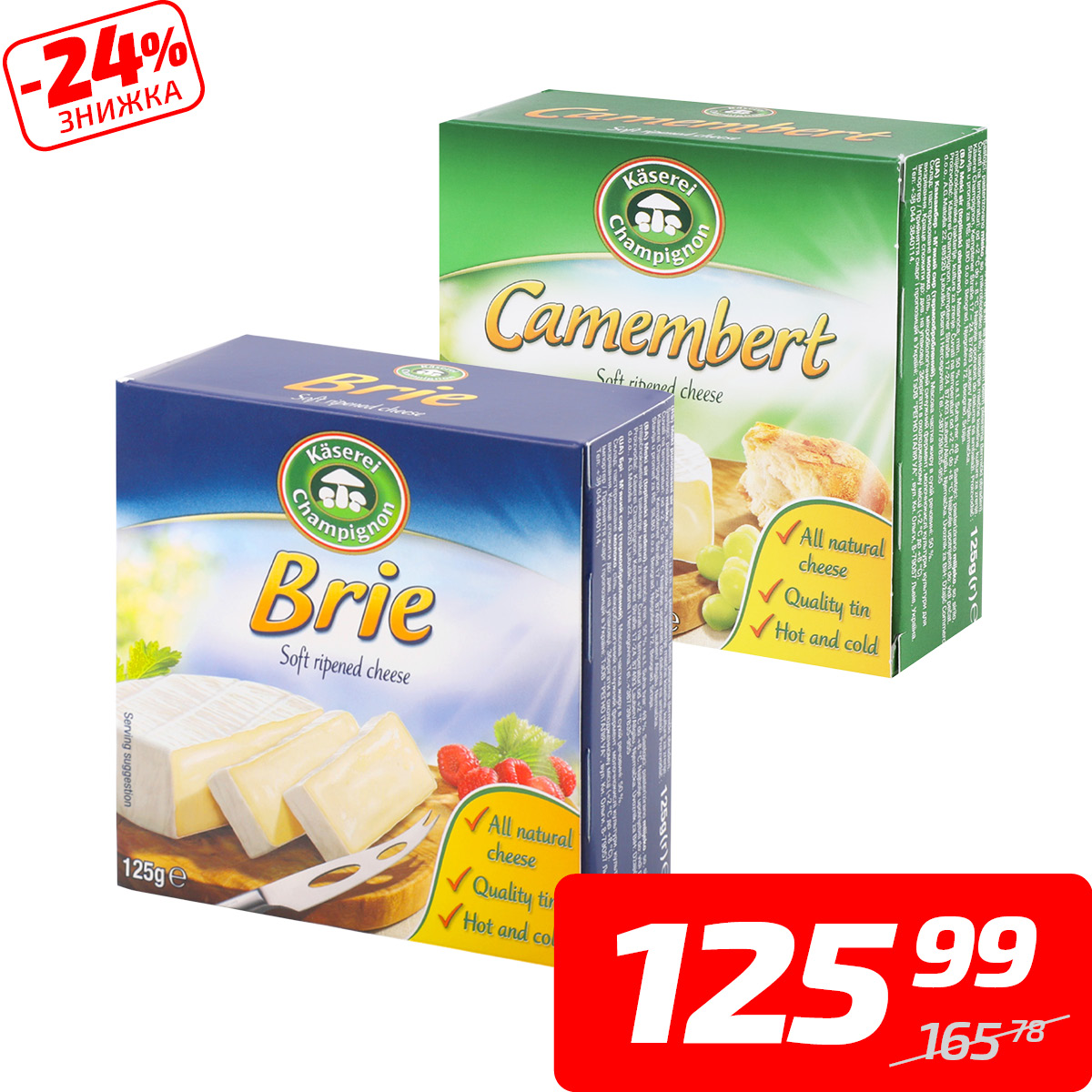 Сир «Camembert» або «Brie», 50%, ТМ «Kaserei Сhampignon», 125 г