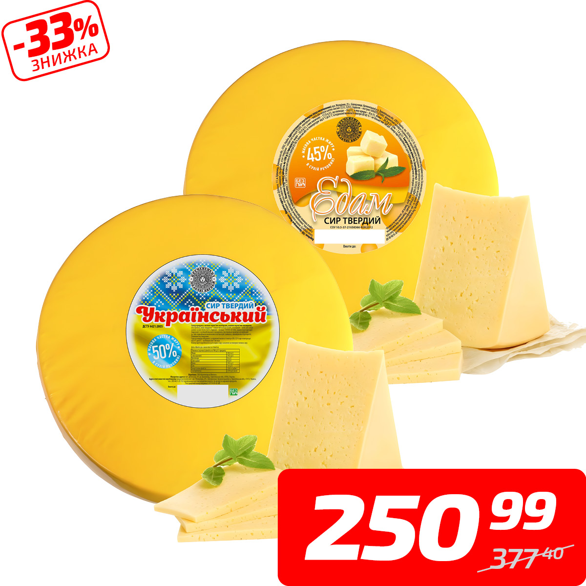 Сир «Едам» або «Український», 45-50%, ТМ «Молоко», 1 кг