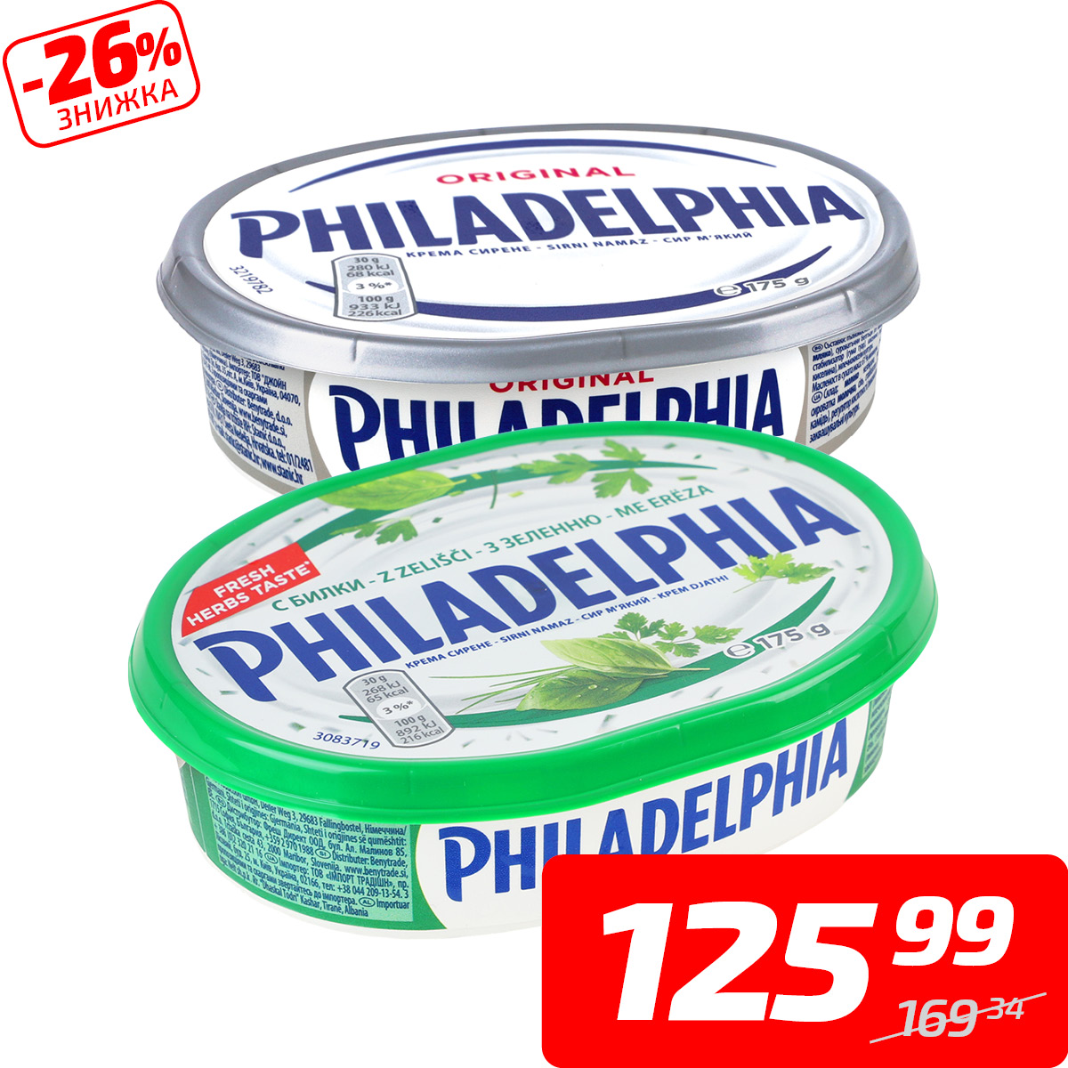 Сир «Філадельфія» оріджинал або з зеленню, 24%, ТМ «Крафт», 175 г