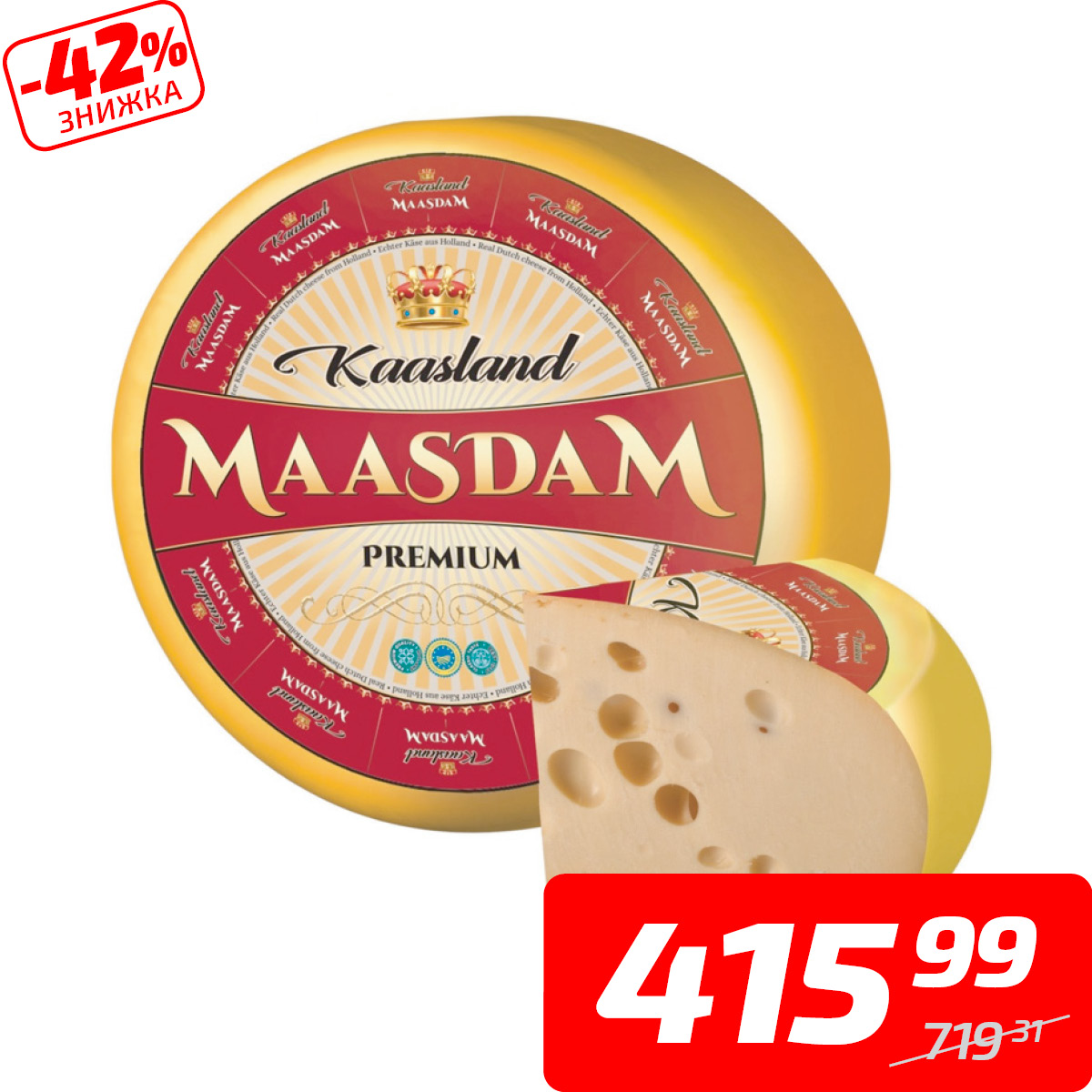 Сир «Маасдам преміум», 45%, ТМ «Каасланд», 1 кг